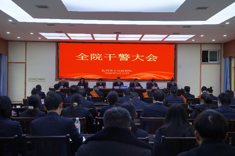3月20日下午,监利市检察院召开2026年度全院干警大会。会议通过总结过往和部署新篇,动员全体干警以奋斗姿态,开启新一年检察工作高质量发展新征程。院党组书记、检察长张庆培出席会议并讲话,院领导班子成员及全体干警参加会议。